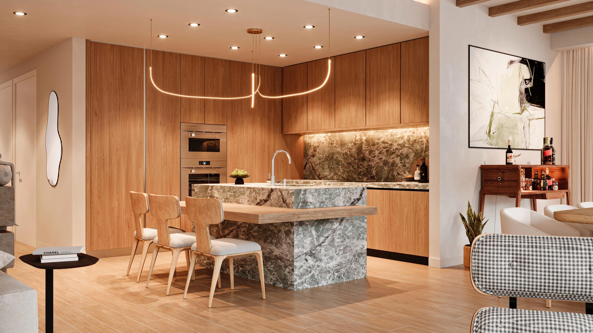 Our process includes layout planning, finish and material selection, lighting design, custom millwork, and FF&E coordination. We collaborate closely with architects, consultants, and contractors to ensure design continuity throughout every phase. The result is a well-resolved space where architecture and interior design work seamlessly together—enhancing daily experience while reflecting the client’s vision and lifestyle.